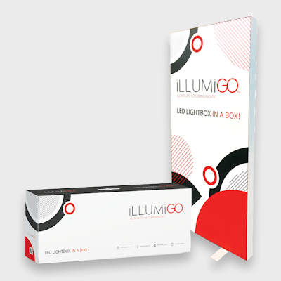 Vår LED-ljusbox iLLUMiGO har en stabil aluminiumram och monteras enkelt för hand. Den kan beställas med tryck på en eller båda sidor för maximal synlighet.
