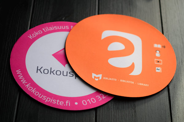 Musmattor tillverkade i PVC-plast fungerar även utmärkt som betalunderlägg i butiker. Dessa underlägg och PVC-musmattor trycks med offset-tryck direkt på plasten. Trycket skyddas av en transparent, slitstark vinyl med en lätt strukturerad yta för bästa hållbarhet.