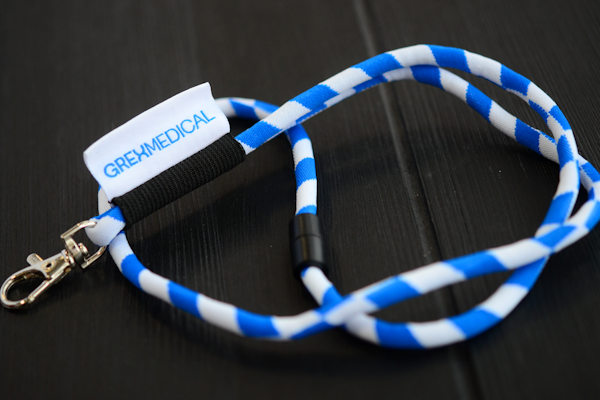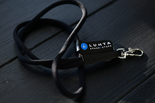 Denna produkt finns i två olika längder: som nyckelband för halsen eller som handledsrem. Som standard levereras nyckelbandet med ett vävt märke och handledsremmen med en PVC-krage. Både det vävda märket och PVC-kragen är som standard tvåfärgade (valfria nyanser).
